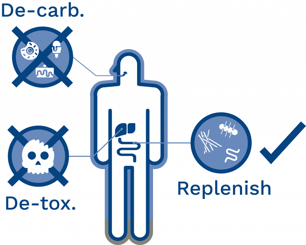 Our health depends on the degree level of toxic exposure and the body’s ability to shed them. Many organs suffer with a high toxic load, including the liver, the microbiome (the gut bacteria, the first line of immune defense and hormonal balance), the skin, the brain, the lungs, and the kidneys. During the detox stage, you will be provided with the key nutrients in foods and supplements to support detoxification, prevent oxidation, and help reduce chronic inflammation.65, 66, 67, 68