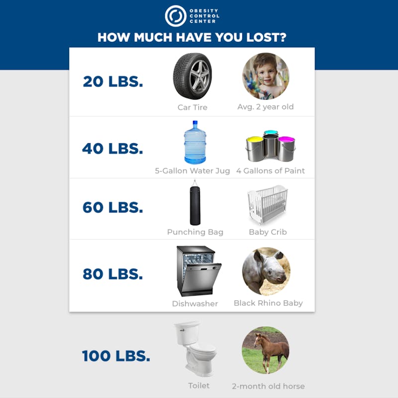 “I’ve only lost 40 lbs.” How often do we hear people trying to lose weight sound so defeated after seeing numbers on the scale? Sure, 40 might sound like a small number to someone whose goal weight is still 80 pounds away, but did you know that a 5-gallon water jug or an average microwave also weighs around 40 lbs? Focusing on just the numbers isn’t the best way to track your progress. One healthier way to do it is by comparing weight loss milestones to actual objects to give you a clear and accurate representation of how much weight you’ve already lost. Sometimes, all you need are simple reminders of how far you’ve come on your weight loss journey.